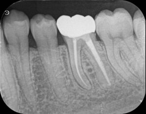 治療後は仮歯を使用してもらい3か月後にレントゲン検査を行い回復傾向にあれば最終補綴物をしていく流れとなります(その歯だけの治療であれば)